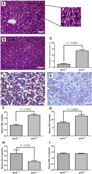 • Apolipoprotein M (apoM) participates in both high-density lipoprotein and cholesterol metabolism. Little is known about how apoM affects lipid composition of the liver and serum. In this study, we systemically investigated the effects of apoM on liver and plasma lipidomes and how apoM participates in lipid cycling, via apoM knockout in mice and the human SMMC-7721 cell line. We used integrated mass spectrometry-based lipidomics approaches to semiquantify more than 600 lipid species from various lipid classes, which include free fatty acids, glycerolipids, phospholipids, sphingolipids, glycosphingolipids, cholesterol, and cholesteryl esters (CEs), in apoM mouse. Hepatic accumulation of neutral lipids, including CEs, triacylglycerols, and diacylglycerols, was observed in apoM mice; while serum lipidomic analyses showed that, in contrast to the liver, the overall levels of CEs and saturated/monounsaturated fatty acids were markedly diminished. Furthermore, the level of ApoB-100 was dramatically increased in the liver, whereas significant reductions in both ApoB-100 and low-density lipoprotein (LDL) cholesterol were observed in the serum ofapoM mice, which indicated attenuated hepatic LDL secretion into the circulation. Lipid profiles and proinflammatory cytokine levels indicated that apoM leads to hepatic steatosis and an overall state of metabolic distress. Taken together, these results revealed that apoM knockout leads to hepatic steatosis, impaired lipid secretion, and an overall state of metabolic distress.