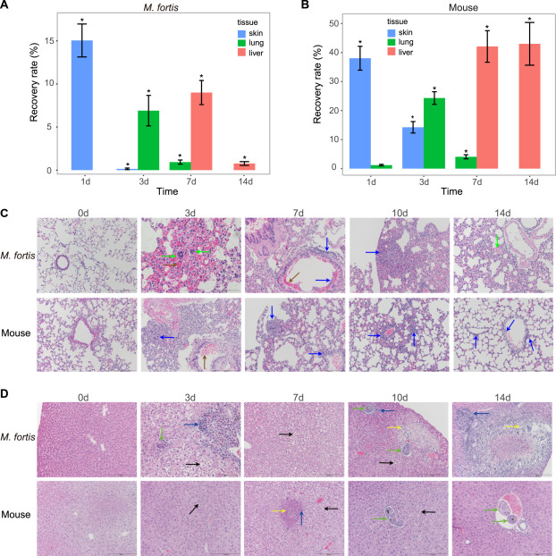 • Microtus fortis is the only mammalian host that exhibits intrinsic resistance against Schistosoma japonicum infection. However, the underlying molecular mechanisms of this resistance are not yet known. Here, we perform the first de novo genome assembly of M. fortis, comprehensive gene annotation analysis, and evolution analysis. Furthermore, we compare the recovery rate of schistosomes, pathological changes, and liver transcriptomes between M. fortis and mice at different time points after infection. We observe that the time and type of immune response in M. fortis are different from those in mice. M. fortis activates immune and inflammatory responses on the 10th day post infection, such as leukocyte extravasation, antibody activation, Fc-gamma receptor-mediated phagocytosis, and the interferon signaling cascade, which play important roles in preventing the development of schistosomes. In contrast, an intense immune response occurrs in mice at the late stages of infection and could not eliminate schistosomes. Infected mice suffer severe pathological injury and continuous decreases in cell cycle, lipid metabolism, and other functions. Our findings offer new insights into the intrinsic resistance mechanism ofM. fortis against schistosome infection. The genome sequence also provides the basis for future studies of other important traits in M. fortis.