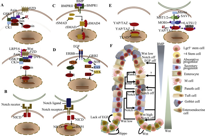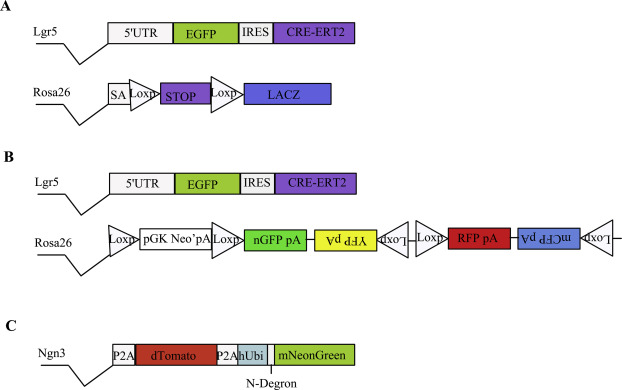 The intestinal epithelium is one of the most rapidly renewing tissues, which is fueled by stem cells at the base of the crypts. Strategies of genetic lineage tracing and organoids, which capture major features of original tissues, are powerful avenues for exploring the biology of intestinal stem cells in vivo and in vitro, respectively. The combination of intestinal organoid–culturing system and genetic modification approaches provides an attractive platform to uncover the mechanism of colorectal cancer and genetic disorders in the human minigut. Here, we will provide a comprehensive overview of studies on intestinal epithelium and intestinal stem cells. We will also review the applications of organoids and genetic markers in intestinal research studies. Furthermore, we will discuss the advantages and drawbacks of organoids as disease models compared with mice models and cell lines.