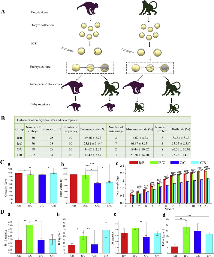 Interspecies embryo transfer between rhesus and cynomolgus monkeys